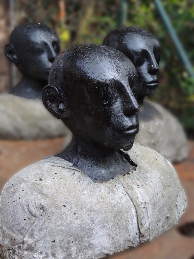 À travers ces sculptures en béton, l’artiste interroge la condition humaine confrontée aux mécanismes de domination, de guerre et d’oppression politique. Les figures représentées, volontairement dépourvues d’identité et d’expression, incarnent une humanité réduite au silence, figée par des systèmes qui broient l’individu et effacent les singularités.